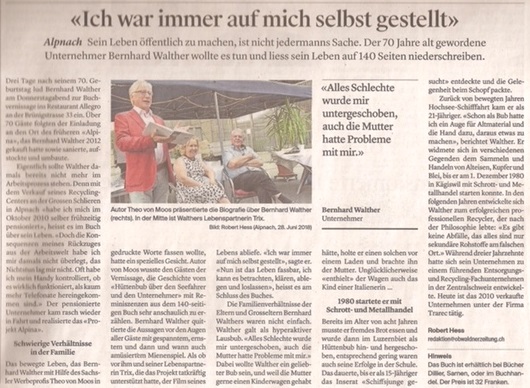 Die Biographie über Bernhard Walther hat mit der Vernissage am 28. Juni 2016 den Weg an die Öffentlichkeit gefunden – gedruckt und gebunden.